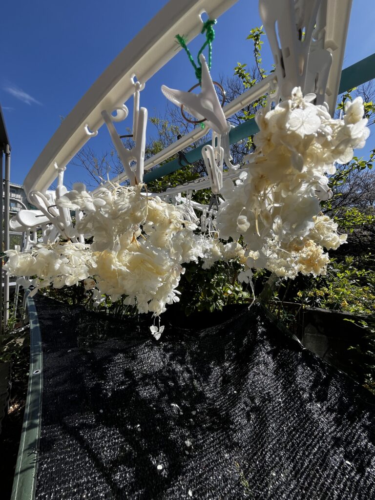 こうしてアナベルを干す作業を行っています。
