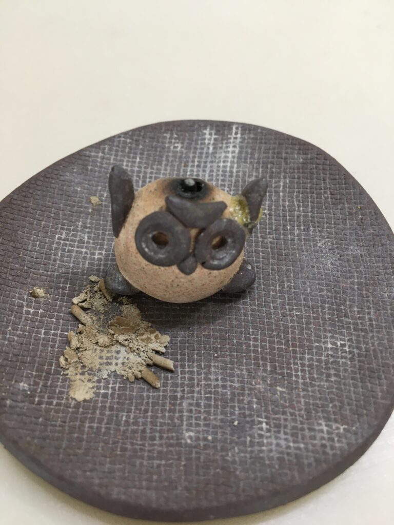 確か京都タワーの中のお店屋さんにぶらっと立ち寄った際に、とても気に入って購入したものです。 かわいいフクロウの頭のところに1本だけお線香を差し込んで焚くのです。