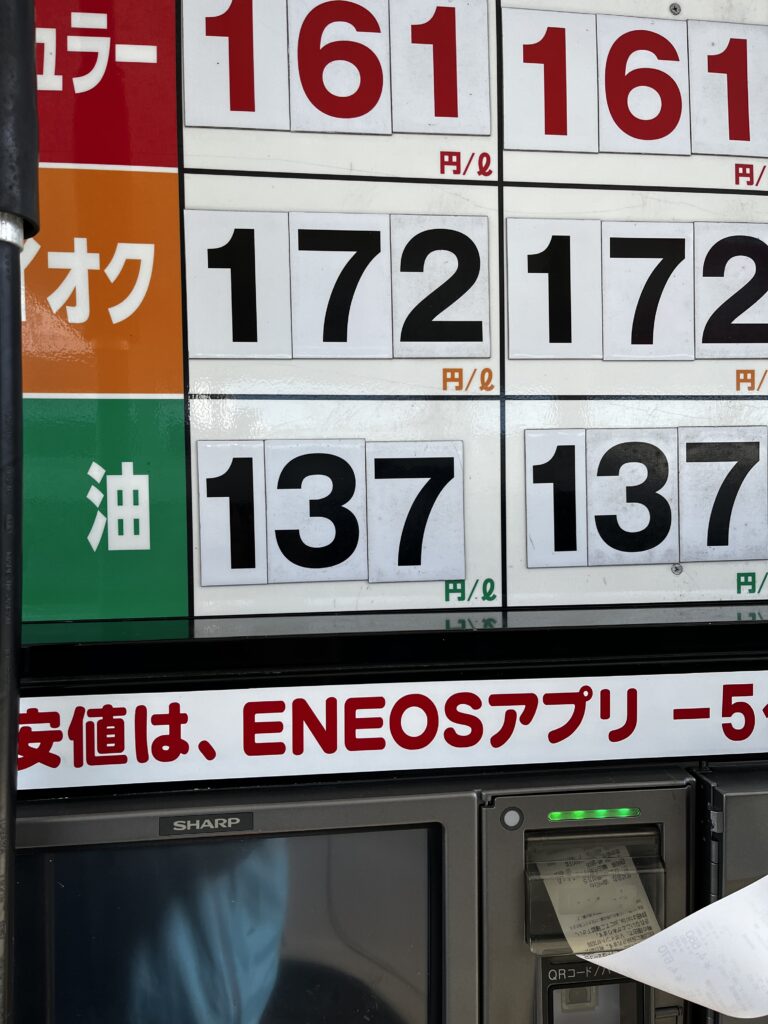 まだまだ価格が下がることが予想されるので、満タンにしないで30ℓいれたというわけです。