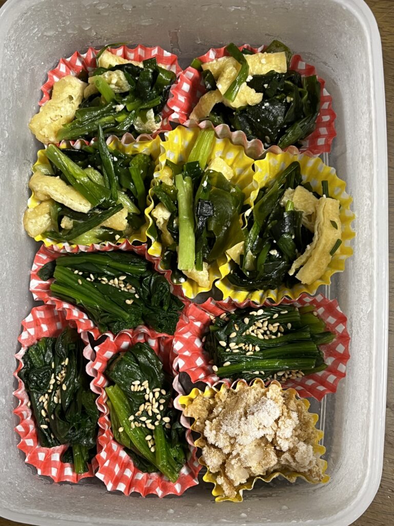 この日は、「ほうれん草のおひたし」「るねぎぬた」でした。