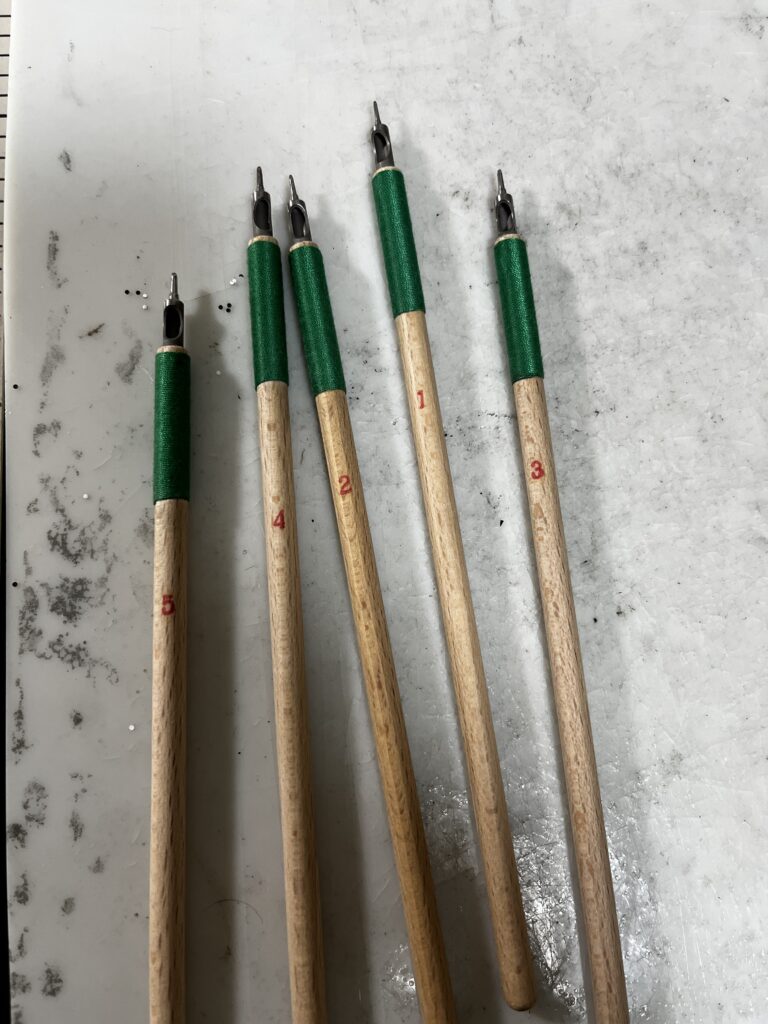 この伊勢型紙の下絵は、全て大小さまざまなで無数の〇で形が構成されているので、右画像のような「丸きり」という道具が必要となります。これもまた「おおすぎ」でインターネット購入しました。